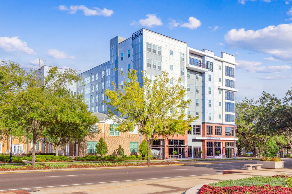 The Row is a mixed-use development along busy SW 13th Street/US Hwy 441, adjacent to the University of Florida. The building is 8 stories with approximately 7,955 square feet of non-residential on the lower floors, with 66 units and 182 total bedrooms on the upper residential floors. It has three stories of internal parking. The project’s location within the I-District Infrastructure Improvements Area (IIA) necessitated additional utility improvements.